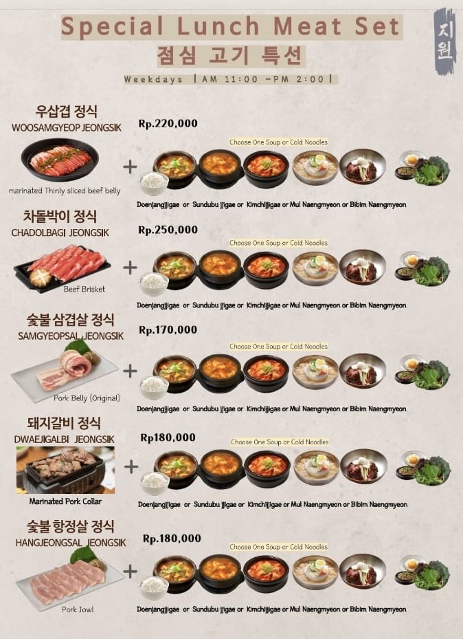 Welcome to Jiwon Galbi 지원갈비, a culinary gem nestled in the heart of South Jakarta. This Korean BBQ restaurant has garnered a loyal following thanks to its diverse and delectable menu. Diners rave about the yangnyeom galbi, known for its tender, thick cuts that burst with flavor. Other must-try dishes include the dolsot bibimbap and savory gun mandu, both of which showcase the restaurant's dedication to authenticity and quality.